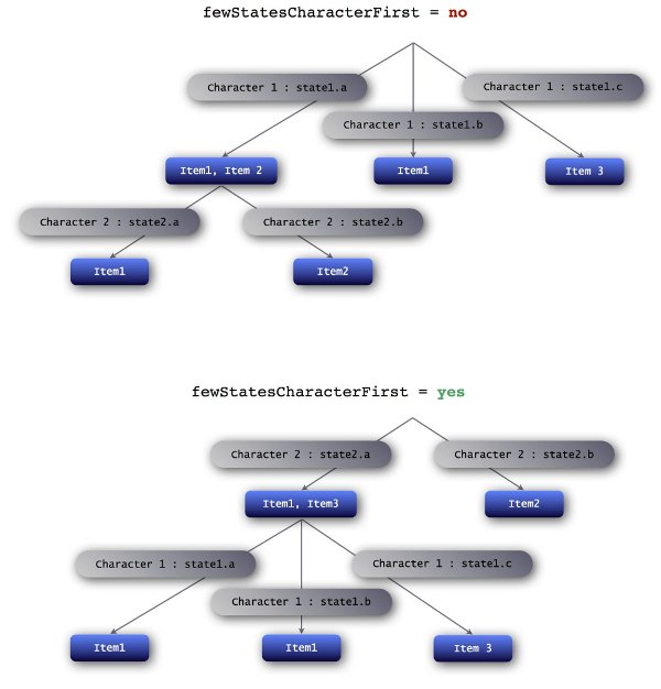 Artificially increases the score of the characters with few states, which puts these characters near the root of key, thus making the identification easier (few questions).